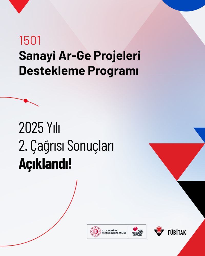 1501 Sanayi Ar-Ge Projeleri Destekleme Programı 2025 yılı 2. çağrısı sonuçları a...