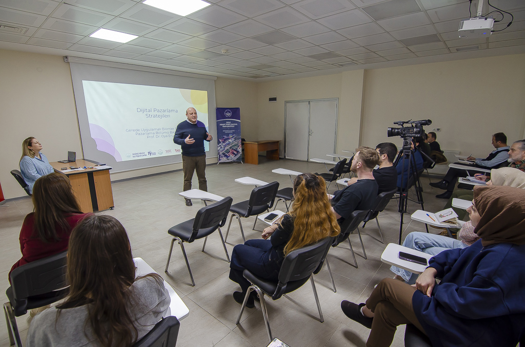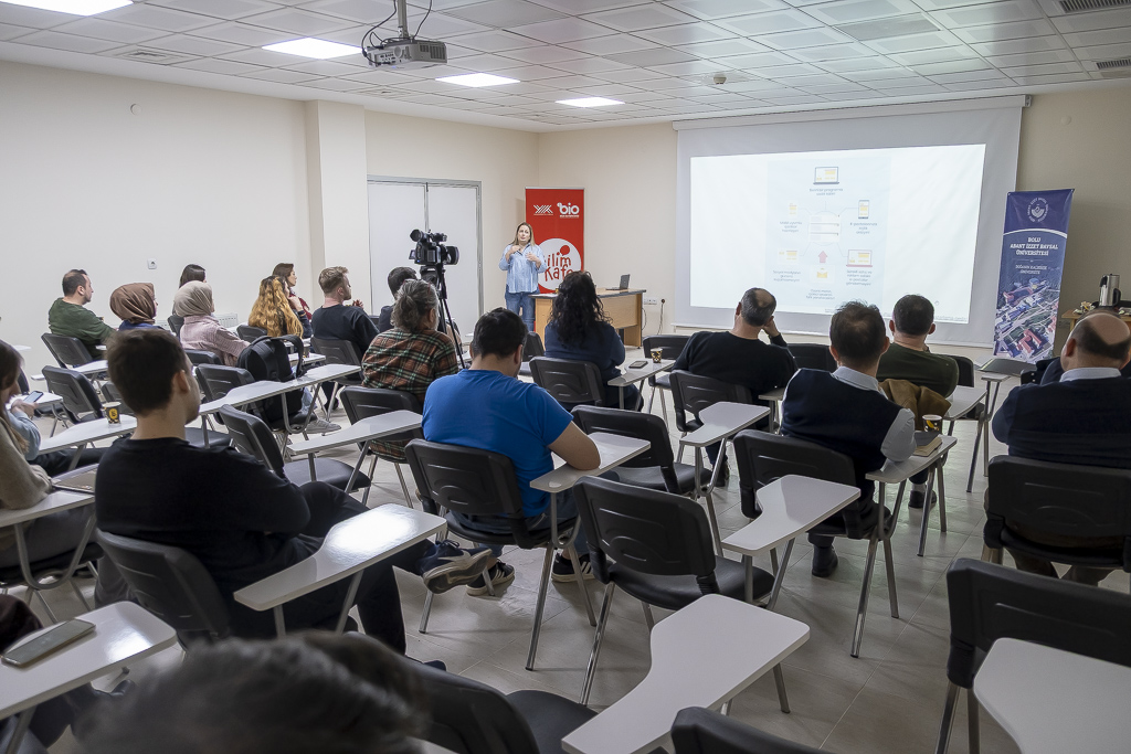 Bolu Teknokent konferans salonunda yapılan eğitimde dijital pazarlamanın önemi, firmaların bir ürünü ya da hizmeti pazarlarken yapması gerekenler, yapay zekâ programlarının hangi alanlarda yarar sağlayacağı konularından bahsedildi.