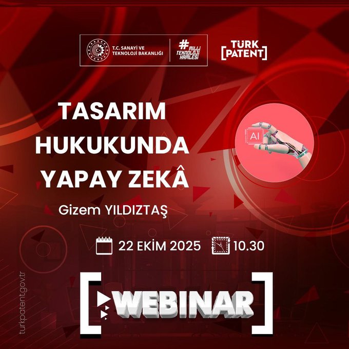 Türk Patent ve Marka Kurumu tarafından "Tasarım Hukukunda Yapay Zekâ" konulu webinar gerçekleştirilecektir.