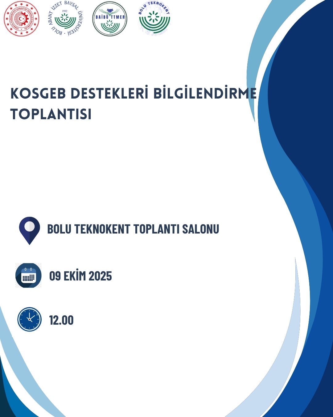 KOSGEB Bolu İl Müdürlüğü tarafından KOSGEB Destekleri Bilgilendirme Toplantısı yapılacaktır.
